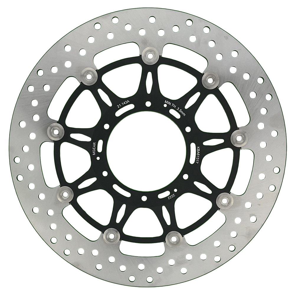 MetalGear's 21-143-A-BK is made from 4.5mm thick AISI410 stainless steel from Japan. This disc suits the SC59 CBR 1000 RR / RA / SP platforms. The precision CNC machined carrier has the exact thickness to cater for ABS platforms sensor ring.