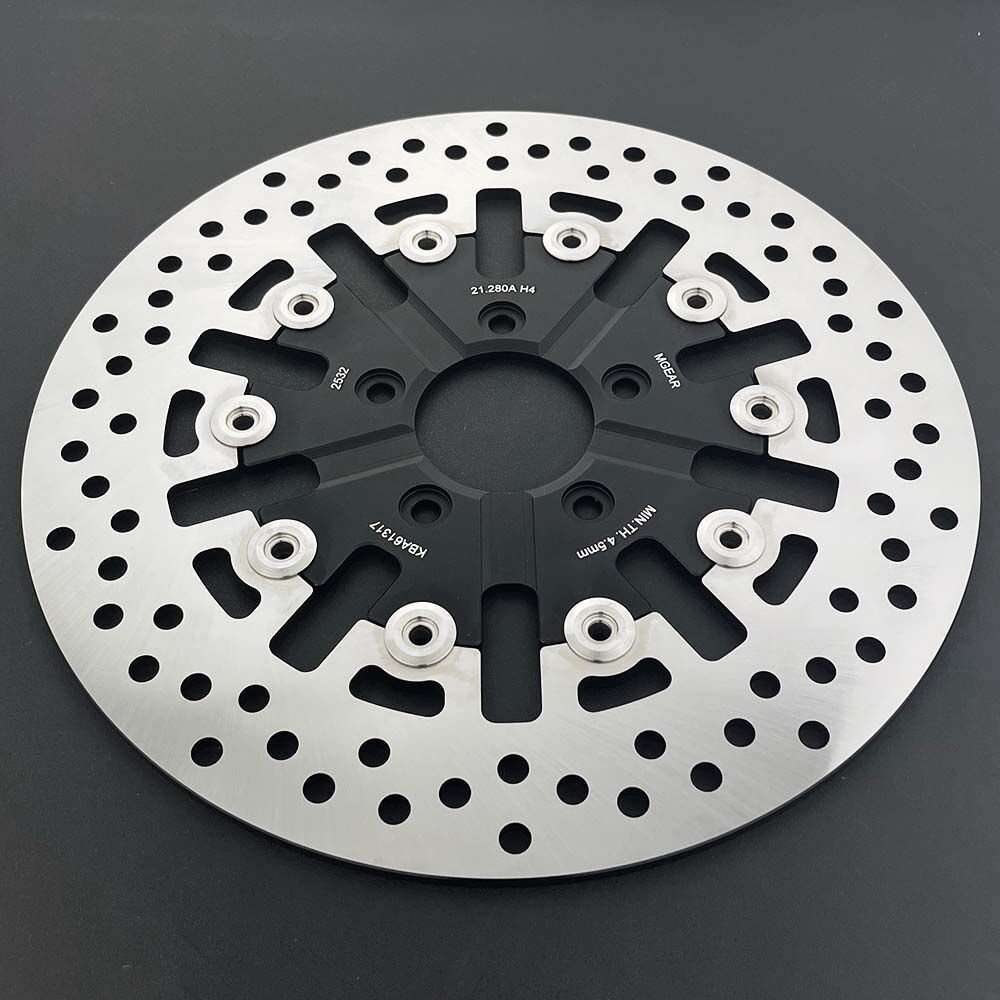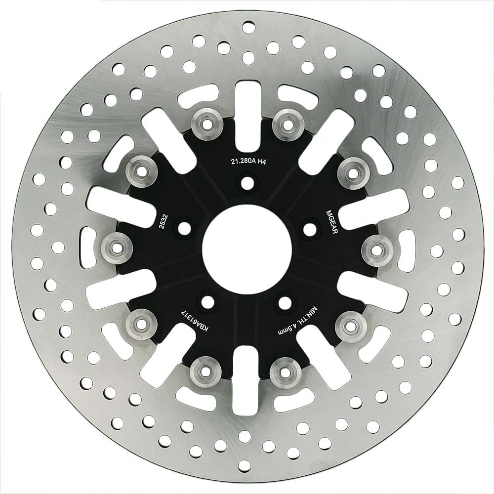 MetalGear's 21-280-A-BK-H4 Brake Disc Rotor is made from 5mm thick AISI410 Japanese stainless steel mounted on a lightweight black aluminium carrier. Suits a huge range of Harley Davidson models from 1999 to 2014.