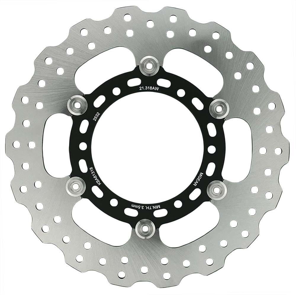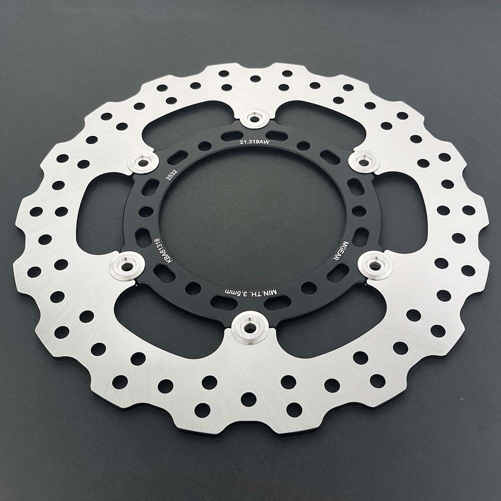 MetalGear's 21-318-AW-BK brake disc rotor is made from 4mm thick AISI410 Japanese stainless steel with an outer wave pattern. Suits Benelli BN & TRK 251 models from 2015 to 2024. Replaces OEM Benelli part number 45030N220002