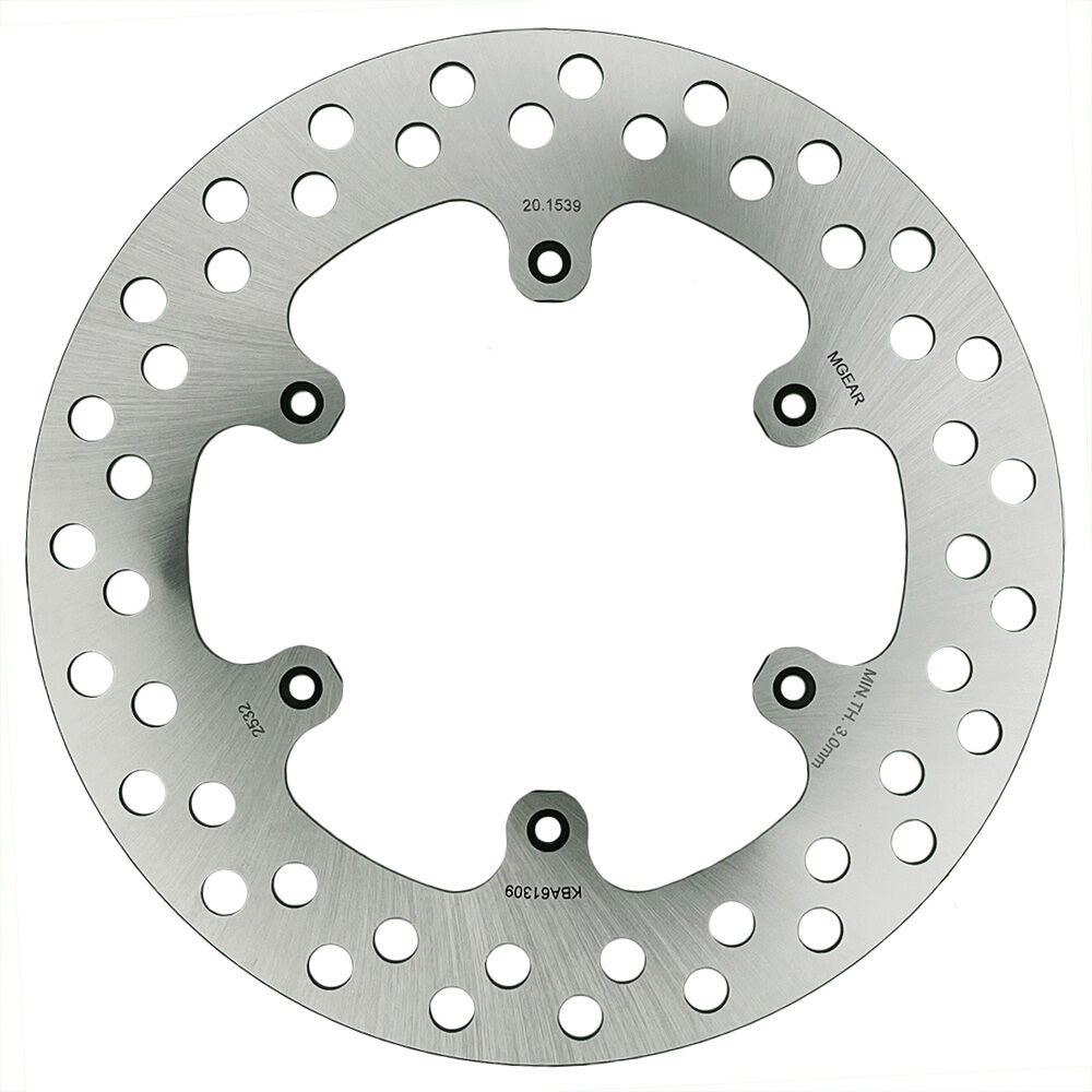 MetalGear's 20-1539 brake disc rotor is made from 3.5mm thick AISI410 Japanese stainless steel. Suits front brake on SWM Gran Turismo 440 & Silver Vase 440 2016 to 2018 models.