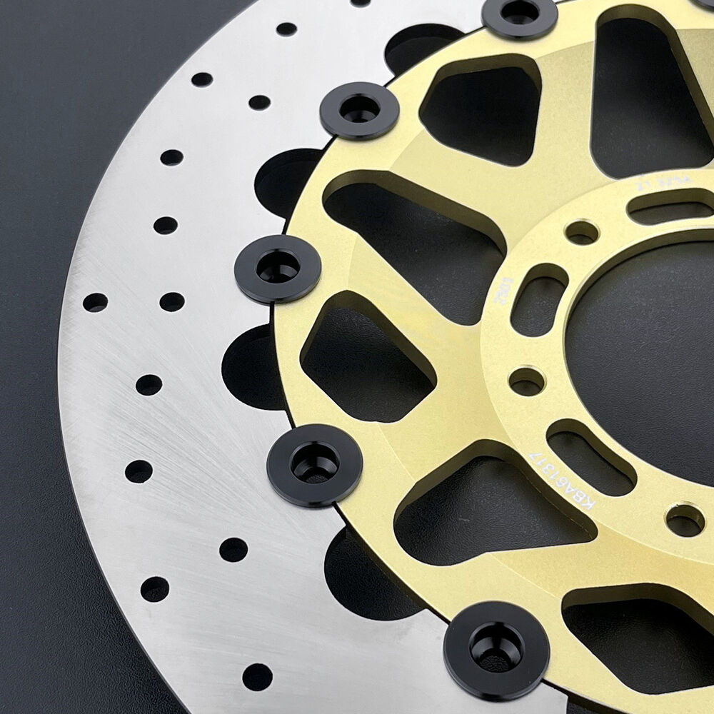 21-325-A-GL replaces the original cast iron disc with AISI410 stainless steel from Japan. This disc is mounted to a precision CNC machined carrier with a fully floating brembo style button kit. Perfect for those riding or preserving their SB6 or SB7 Bimot
