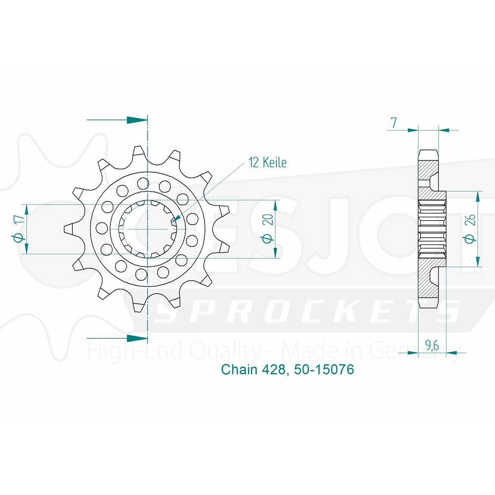 A precision CNC machined sprocket made in Germany. Single sprocket only. 3D Product images are for illustrative purposes only. Design may vary.