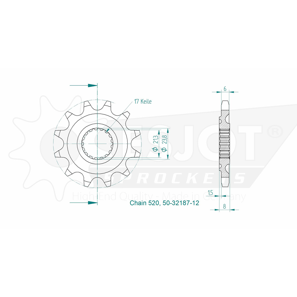 A precision CNC machined sprocket made in Germany. Single sprocket only. 3D Product images are for illustrative purposes only.
