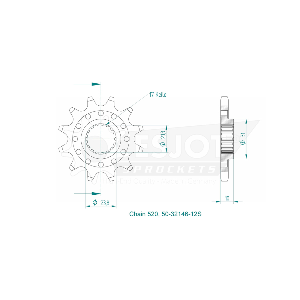 A precision CNC machined sprocket made in Germany that features weight saving holes for added performance. Single sprocket only. 3D Product images are for illustrative purposes only.