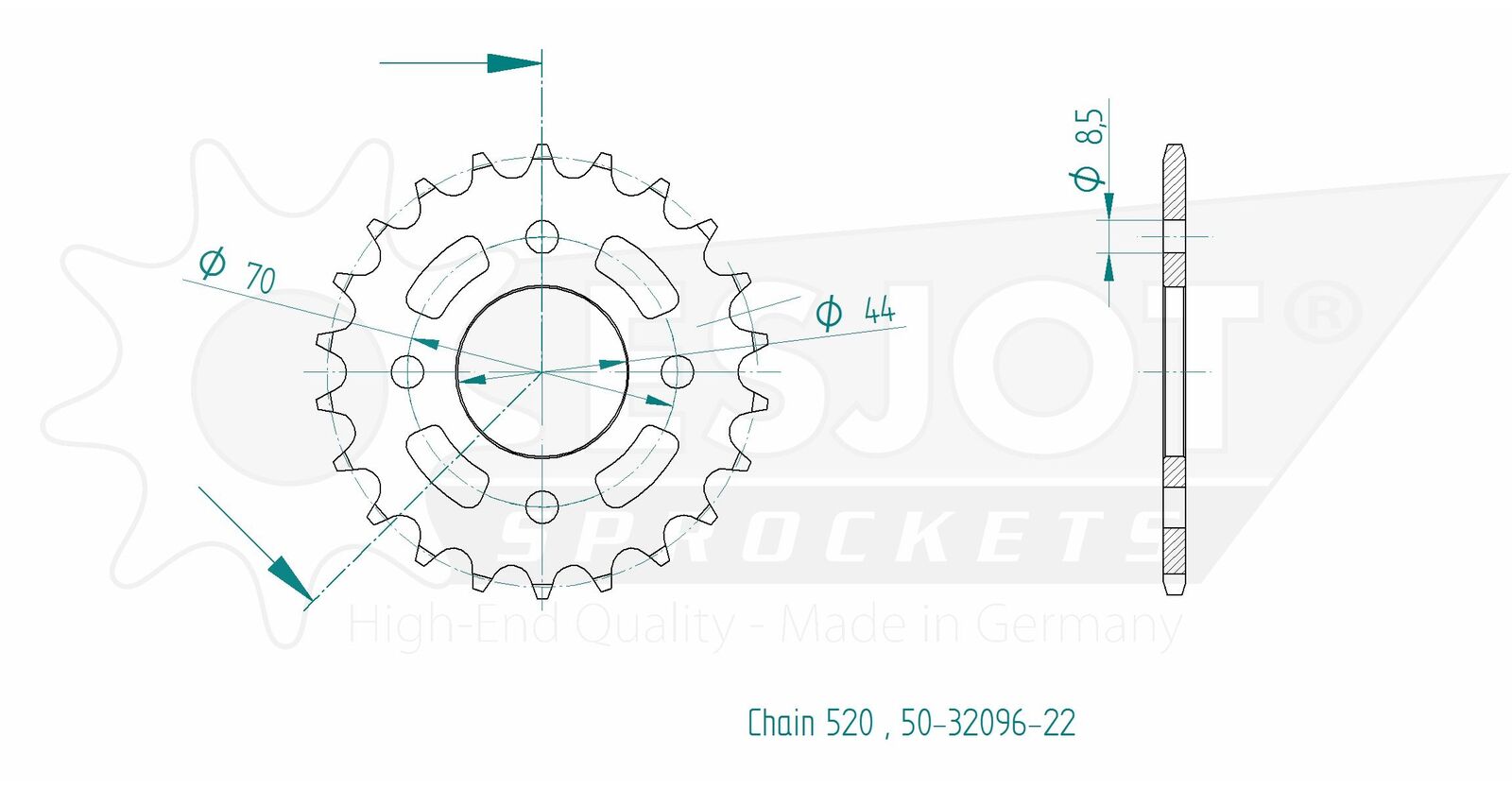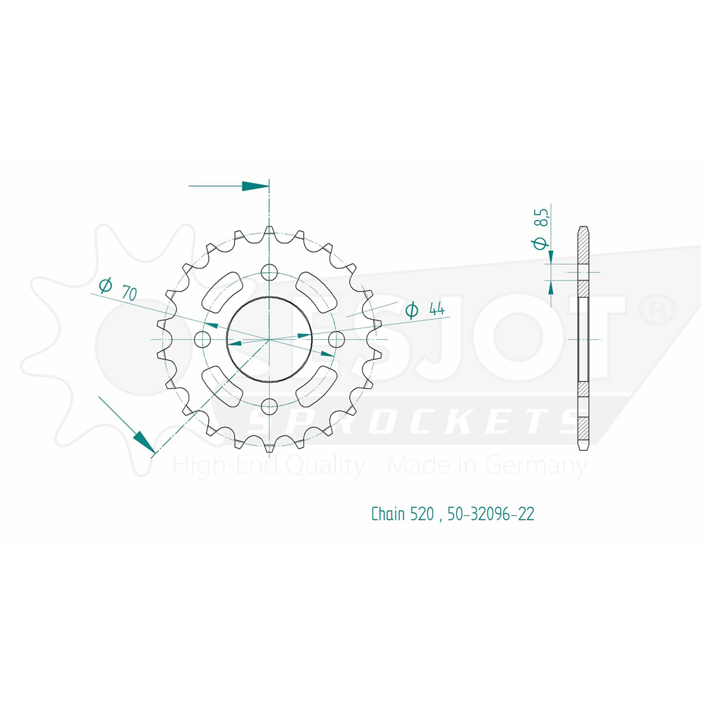 A precision CNC machined sprocket made in Germany. Single sprocket only. 3D Product images are for illustrative purposes only. Design may vary.