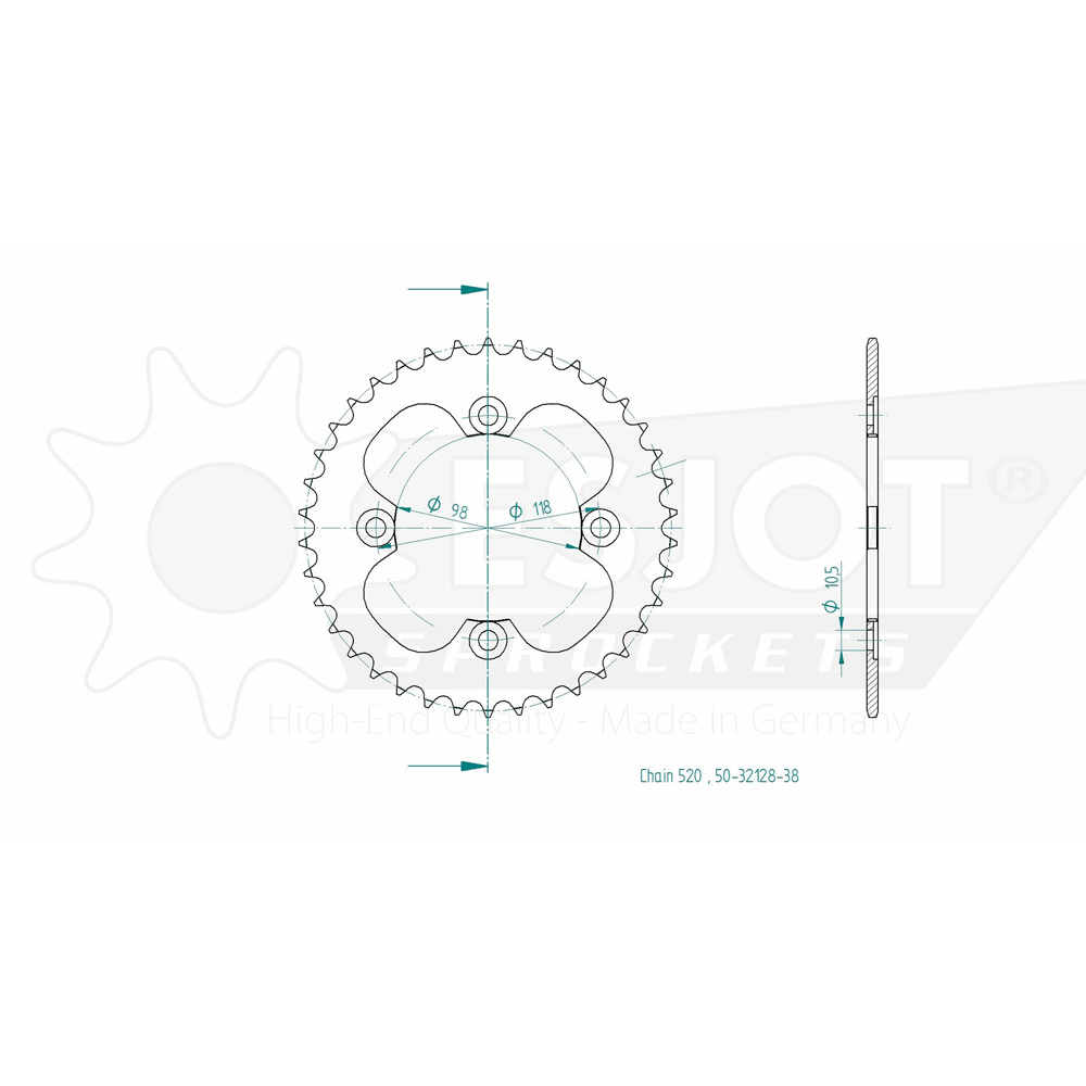 A precision CNC machined sprocket made in Germany. Single sprocket only. 3D Product images are for illustrative purposes only. Design may vary.
