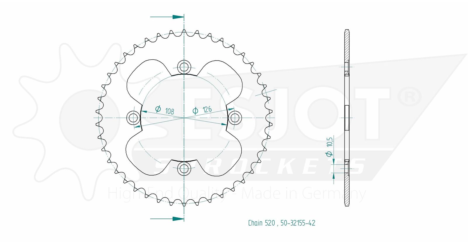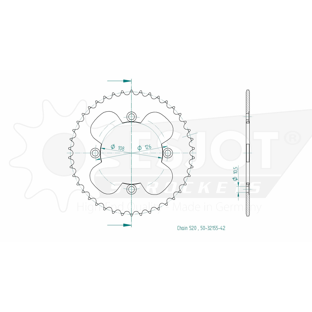 A precision CNC machined sprocket made in Germany. Single sprocket only. 3D Product images are for illustrative purposes only. Design may vary.