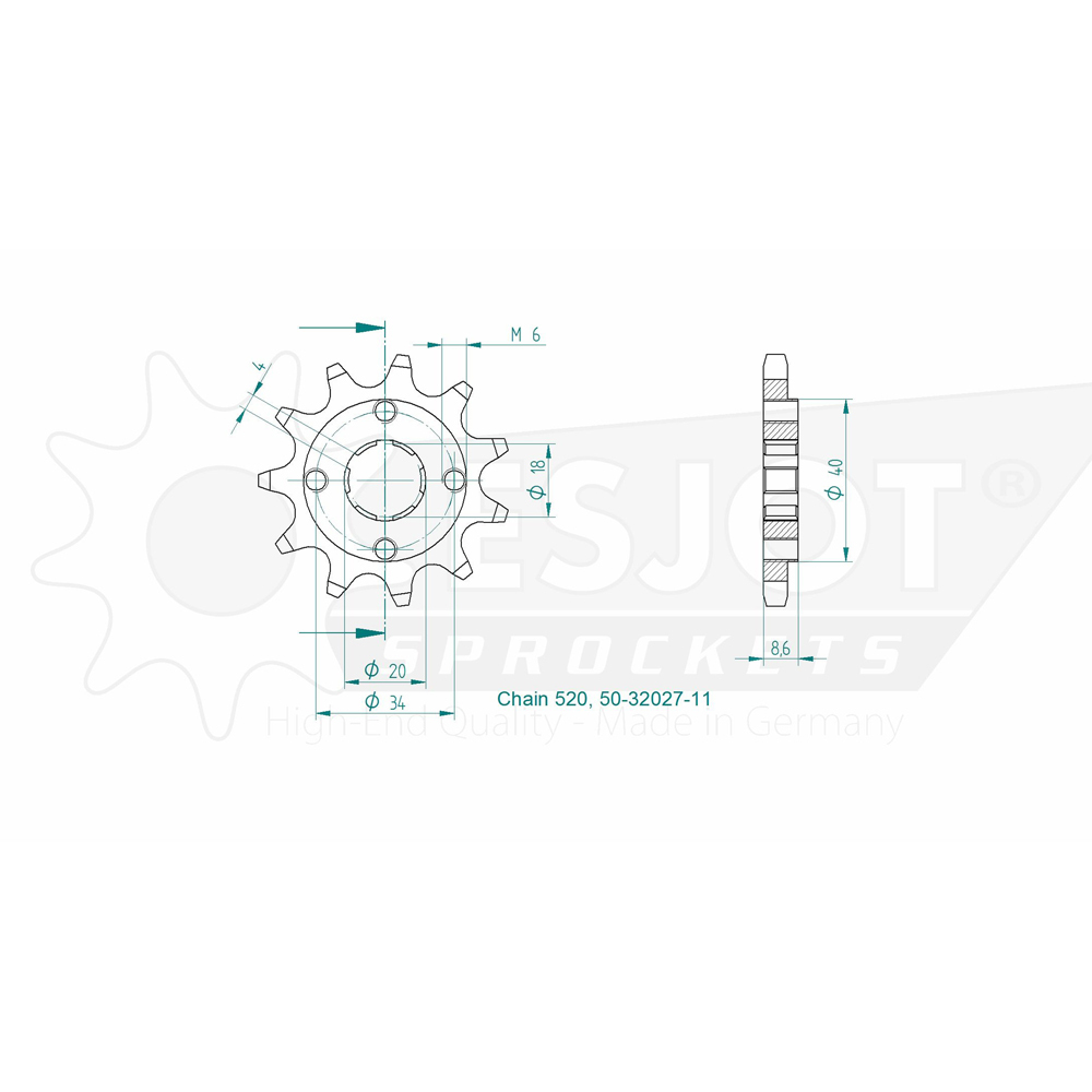 A precision CNC machined sprocket made in Germany. Single sprocket only. 3D Product images are for illustrative purposes only.