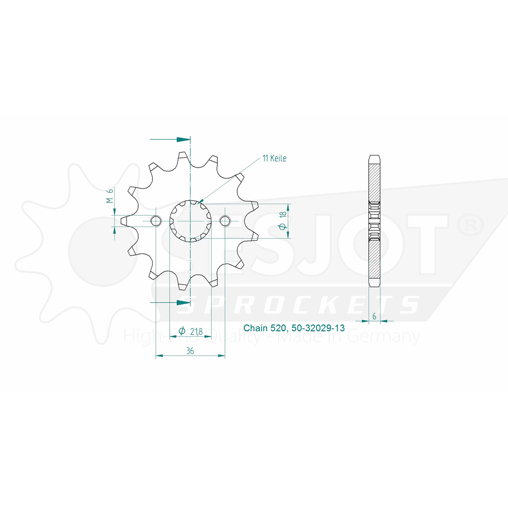 A precision CNC machined sprocket made in Germany. Single sprocket only. 3D Product images are for illustrative purposes only.