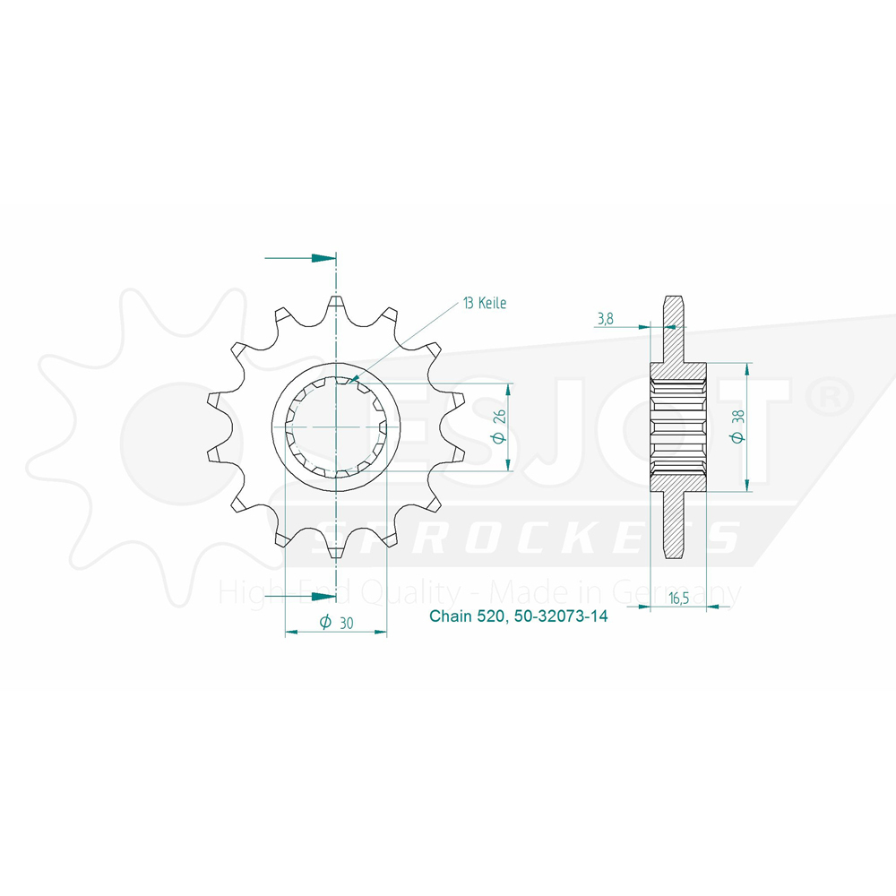 A precision CNC machined sprocket made in Germany. Single sprocket only. 3D Product images are for illustrative purposes only.