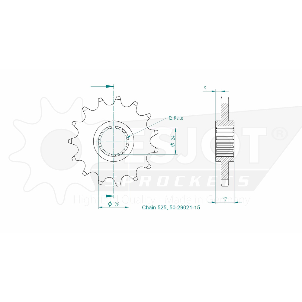 A precision CNC machined sprocket made in Germany. Single sprocket only. 3D Product images are for illustrative purposes only.