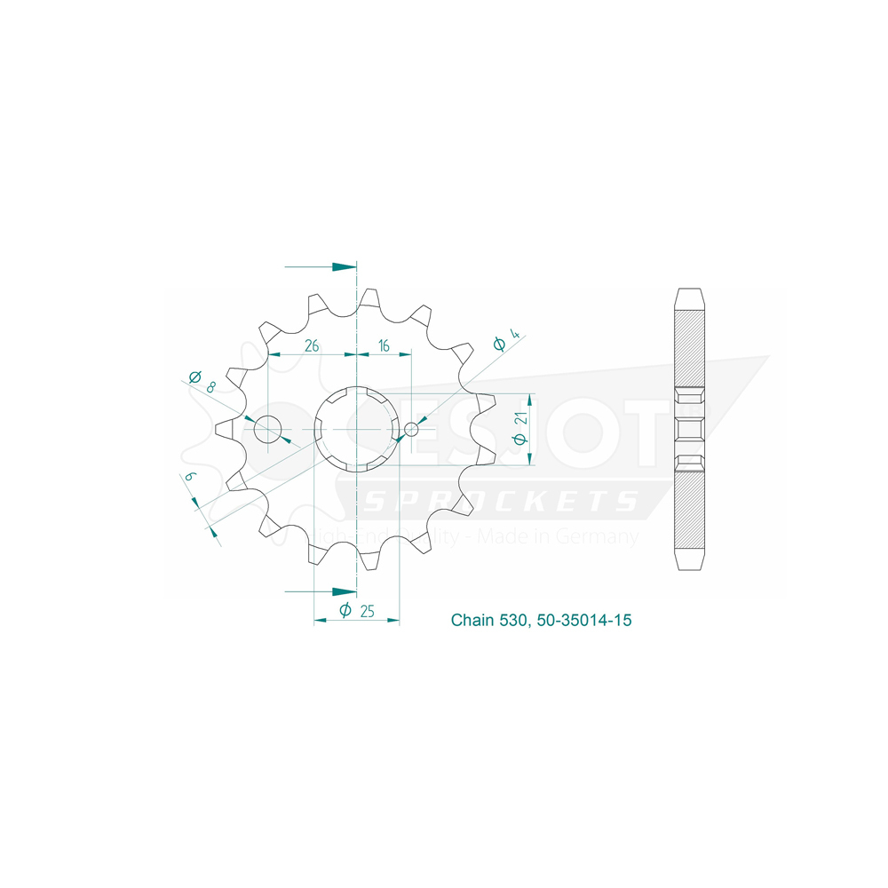 A precision CNC machined sprocket made in Germany. Single sprocket only. 3D Product images are for illustrative purposes only.