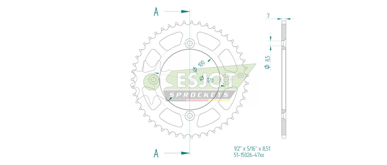ESJOT aluminium sprockets have been developed especially for the tough conditions in Motocross, Enduro and road use. Compared to conventional steel sprockets, an ESJOT aluminium sprocket brings a weight saving of over 60%. The use of high-quality aluminium (7075 T6), as well as the extremely low manufacturing tolerances ensure an extraordinarily long service life.