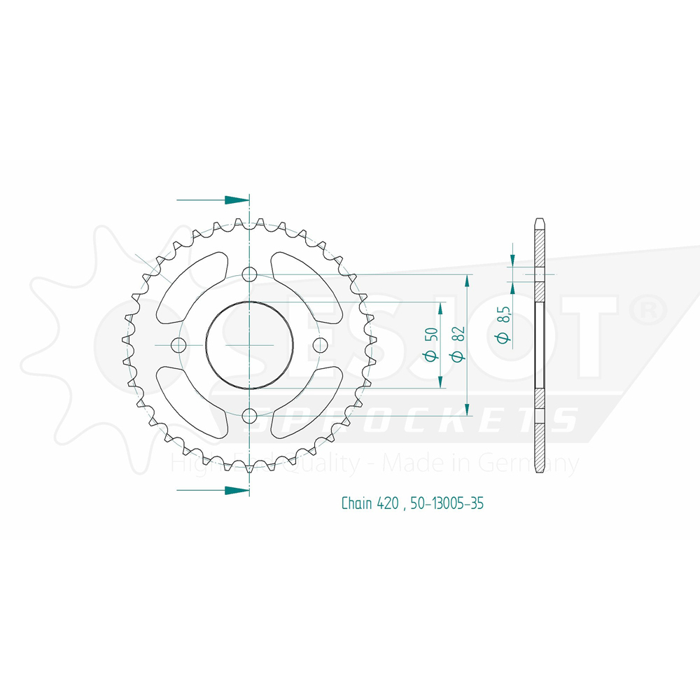 A precision CNC machined sprocket made in Germany. Single sprocket only. 3D Product images are for illustrative purposes only.