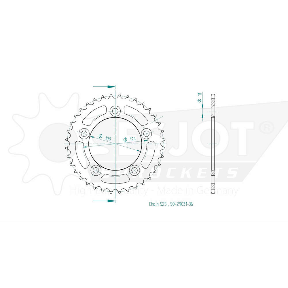 A precision CNC machined sprocket made in Germany. Single sprocket only. 3D Product images are for illustrative purposes only.