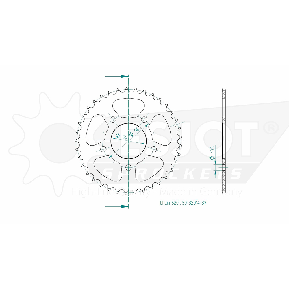 A precision CNC machined sprocket made in Germany. Single sprocket only. 3D Product images are for illustrative purposes only.