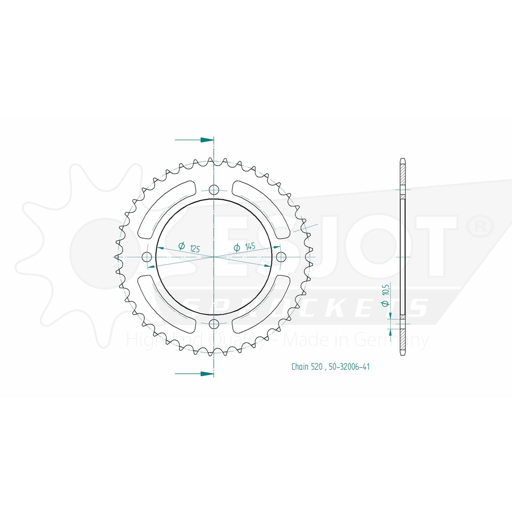 A precision CNC machined sprocket made in Germany. Single sprocket only. 3D Product images are for illustrative purposes only.