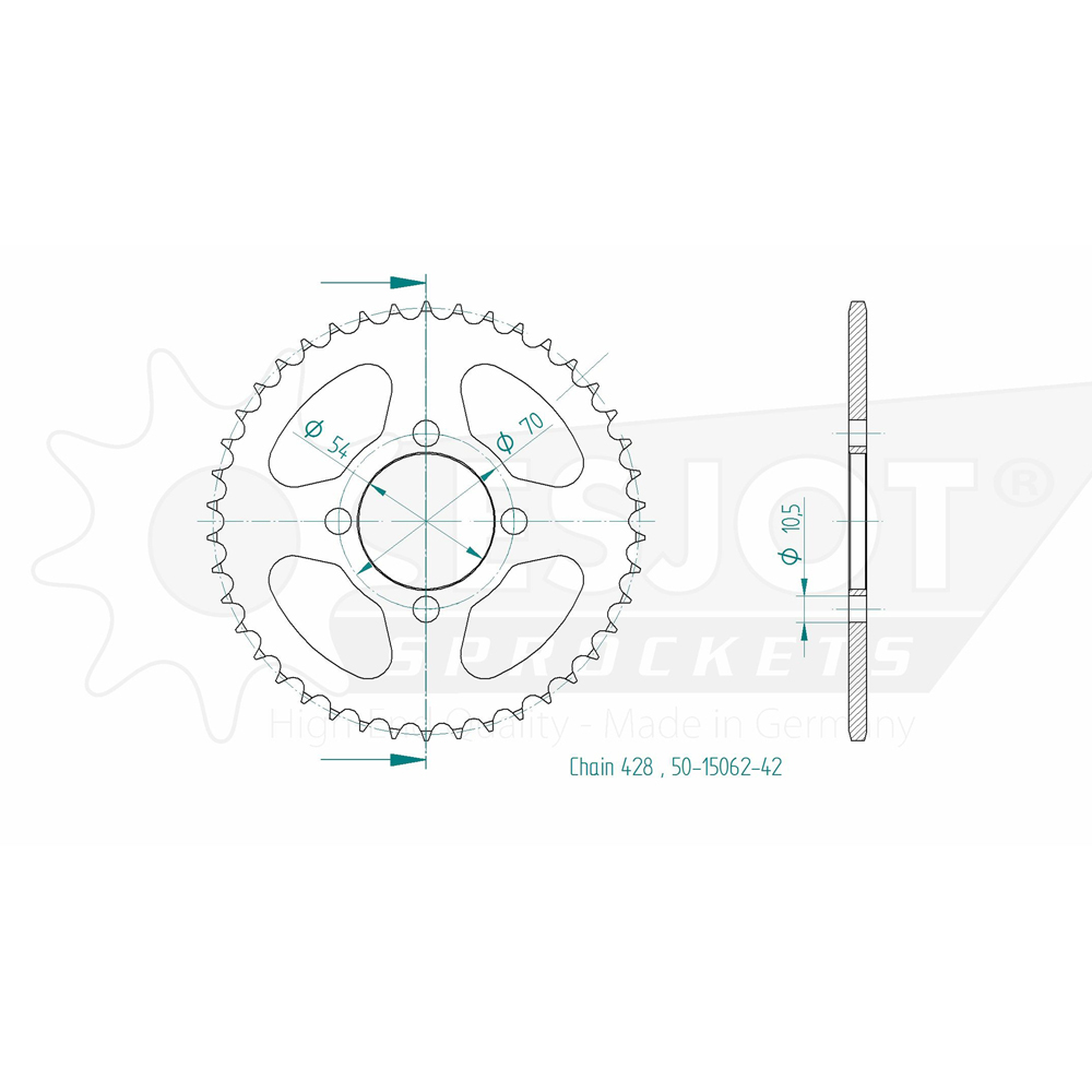 A precision CNC machined sprocket made in Germany. Single sprocket only. 3D Product images are for illustrative purposes only.