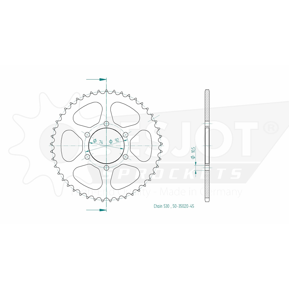 A precision CNC machined sprocket made in Germany. Single sprocket only. 3D Product images are for illustrative purposes only.