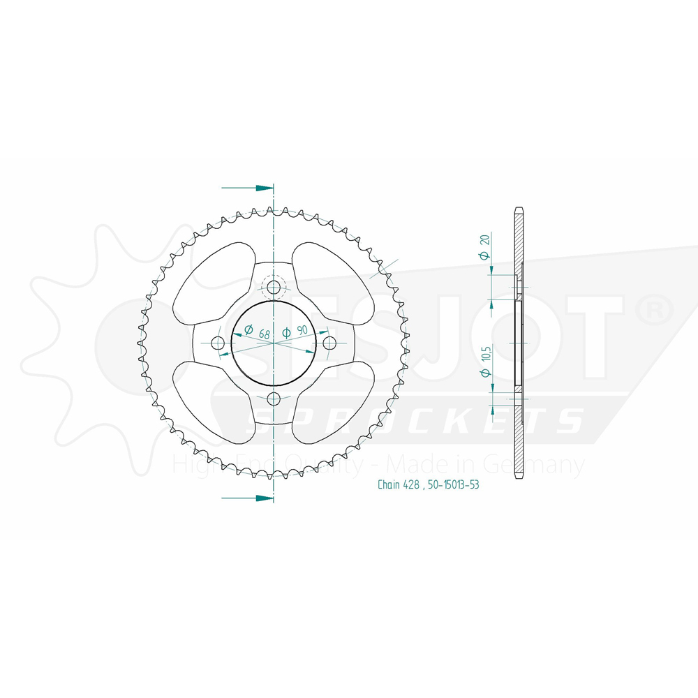 Sprocket Rear 428-53T Steel