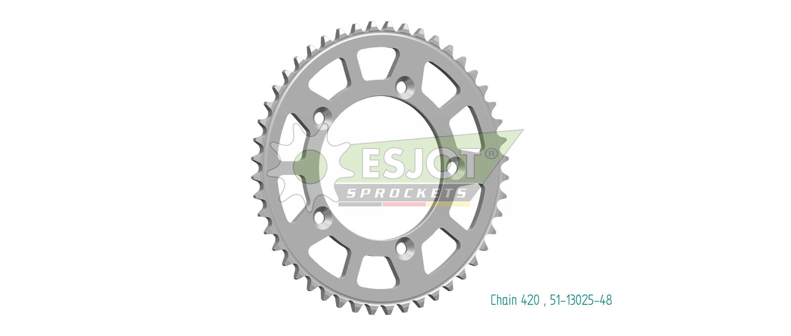 ESJOT aluminium sprockets have been developed especially for the tough conditions in Motocross, Enduro and road use. Compared to conventional steel sprockets, an ESJOT aluminium sprocket brings a weight saving of over 60%. The use of high-quality aluminium (7075 T6), as well as the extremely low manufacturing tolerances ensure an extraordinarily long service life.