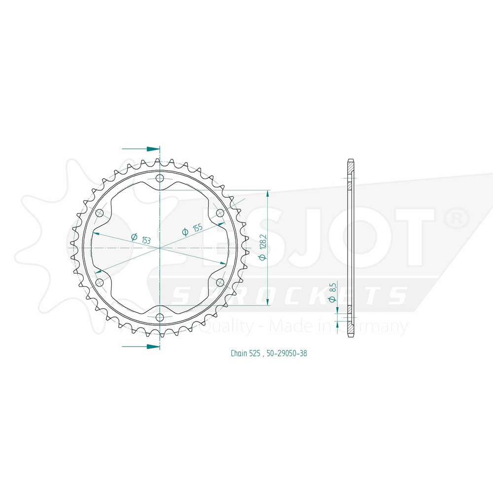 A precision CNC machined sprocket made in Germany. Single sprocket only. 3D Product images are for illustrative purposes only.