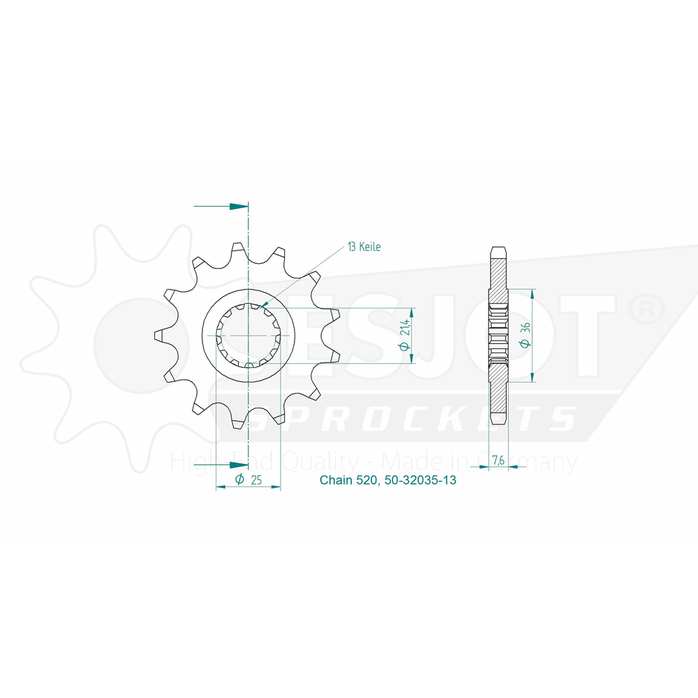 A precision CNC machined sprocket made in Germany. Single sprocket only. 3D Product images are for illustrative purposes only.