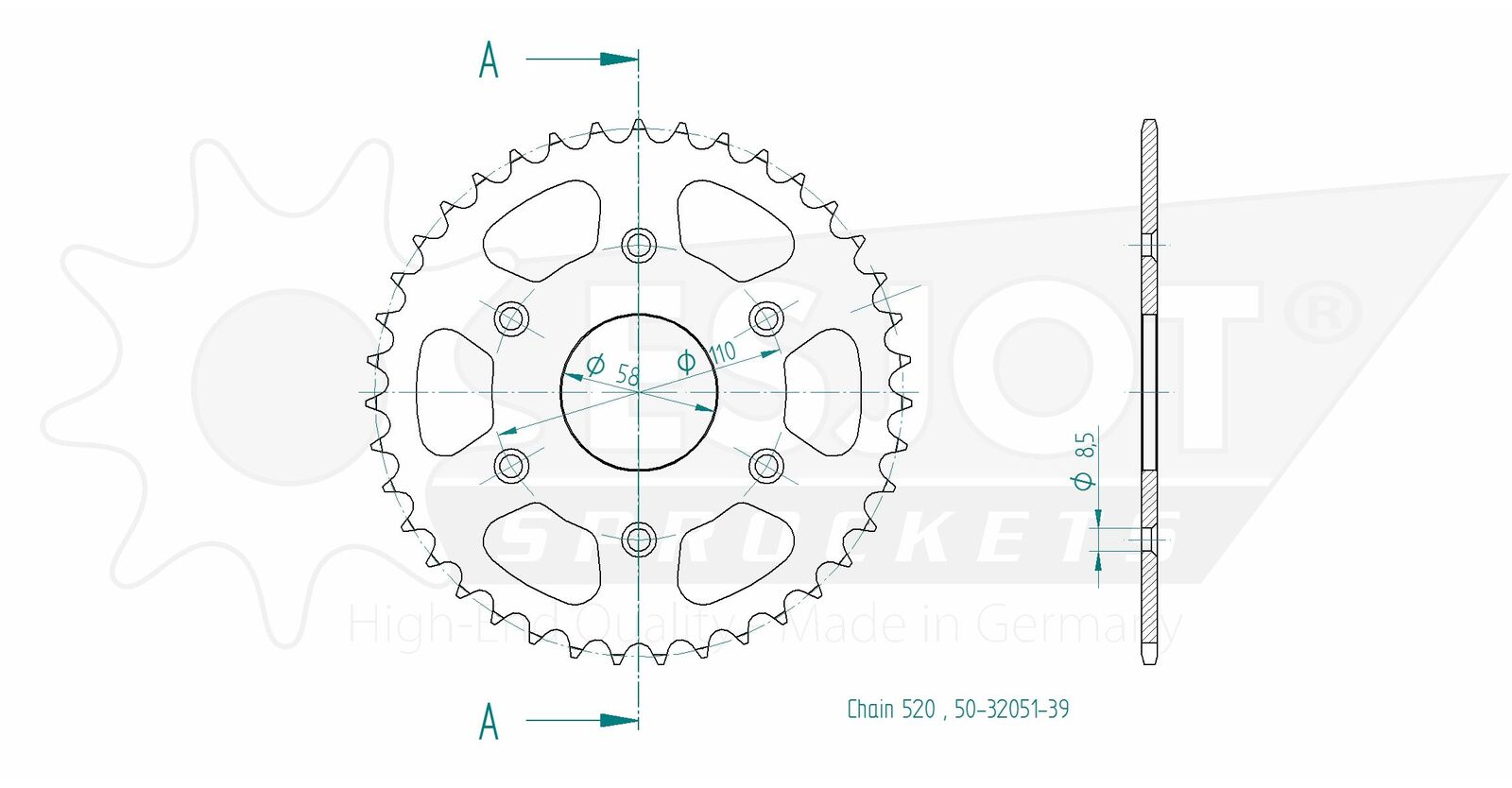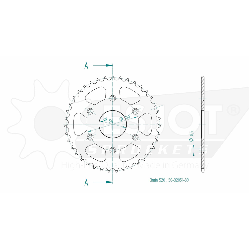 A precision CNC machined sprocket made in Germany. Single sprocket only. 3D Product images are for illustrative purposes only. Design may vary.